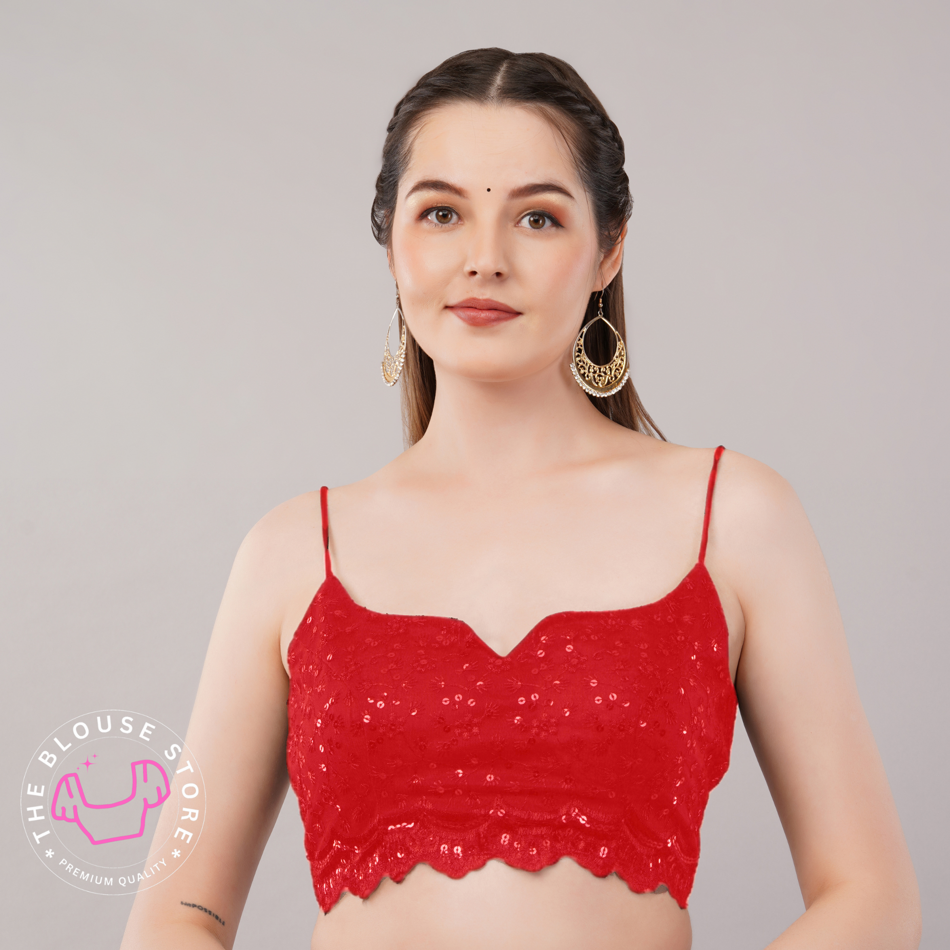 Trendy Red Sleeveless Blouse #34 - Party Wear Readymade Blouses for Modern Indian Woman