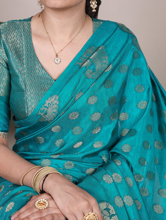 Latest Trendy Floral Sarees 1209 - Turquoise Blue